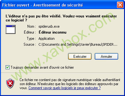 Lors du lancement vous verrez apparaître ce message (sous Windows)