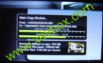 pendant la durée de la copie on peut voir le la vitesse de transfert, la taille du jeux et suivre la copie