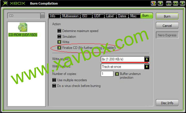 Dans la section Burn, cliquez sur "finalize CD (no further writing possible)"