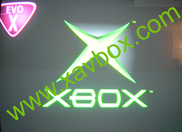 Le logo vert claire avec "Evo X" en haut à gauche (bios Evox M8)