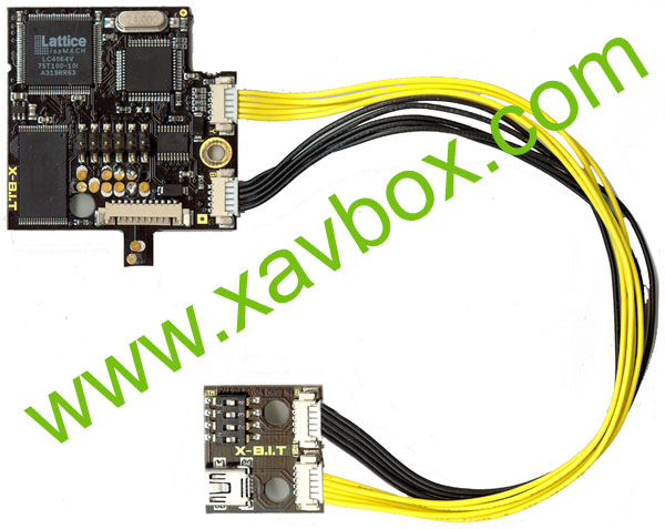 puce au switch, le câble USB, et la nappe pour souder la Xbit